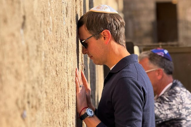 Джаред Кушнер, зять президента США Дональда Трампа, и специальный посланник Вашингтона на Ближнем Востоке Стивен Уиткофф помолились у Стены плача в Иерусалиме, пишет