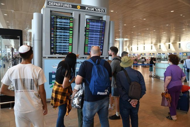Пассажиры аэропорта имени Бен-Гуриона изучают табло вылетов. Фото: Гили Яари/Flash90